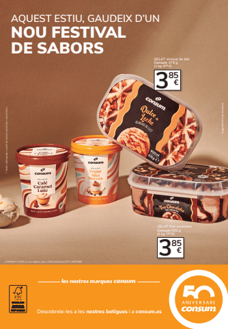 CONSUM S. COOP. V. %u2022 Av. Alginet, n%u00fam. 1 Silla (Val%u00e8ncia) %u2022 CIF: F-46078986Suggeriment de presentaci%u00f3AQUEST ESTIU, GAUDEIX D%u2019UN NOU FESTIVAL DE SABORS385%u20acGELAT tres xocolates Consum 492 g (1 kg: 783 %u20ac)385%u20acGELAT alm%u00edvar de llet Consum 476 g(1 kg: 809 %u20ac)* Dades obtingudes a partir de panel o panels de consumidors.Descobreix-les a les nostres botigues i a consum.es