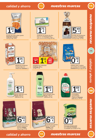 625%u20acComida para perros j%u00fanior con pollo Vitality 4 kg(1 kg: 156 %u20ac)160%u20acGel de ba%u00f1o oliva Kyrey 750 ml(100 ml: 021 %u20ac)175%u20acSardinas en aceite de oliva bajo en sal Consum 84 g (peso neto escurrido) (1 kg: 2083 %u20ac)135%u20acBebida de avellanas enriquecida con vitaminas Consum 1 l110%u20acSnacks de ma%u00edz sabor queso Cheeskis Consum110 g (1 kg: 10 %u20ac)079%u20acGalletas Mini Cookies con pepitas de chocolate Consum 85 g (1 kg: 929 %u20ac)549%u20acSurtido de bombonessin gluten Consum470 g (1 kg: 1168 %u20ac)649%u20acComida para perros adultos m%u00fasculos fuertes Vitality4 kg (1 kg: 162 %u20ac)119 1 %u20ac 39%u20acANTES:Magdalenas redondas Consum 360 g (1 kg: 331 %u20ac)AHORAM%u00c1SBARATO090%u20acEstropajo desincrusta con esponja Consum3 unidades (la unidad: 030 %u20ac)169%u20acLavavajillas concentrado Platinum Consum600 ml (1 l: 282 %u20ac)125%u20acBody milk aloe vera Kyrey 400 ml(100 ml: 031 %u20ac)calidad y ahorrocalidad y ahorrocalidad y ahorro