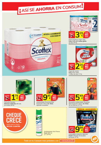%u00a1AS%u00cd SE AHORRA EN CONSUM!Todo en tu Consum m%u00e1s pr%u00f3ximo y en consum.es179 2 %u20ac 19%u20acANTES:Pa%u00f1uelos faciales Kleenex Collection 48 uds.(la unidad: 004 %u20ac)AHORAM%u00c1SBARATO 549 6 %u20ac 99%u20acANTES:Recambio ambientador Essential Mist Explosi%u00f3n C%u00edtrica Air Wick20 ml (100 ml: 2745 %u20ac)AHORAM%u00c1SBARATO220 3 %u20ac 69%u20acANTES:Papel de cocina Foxy Asso Ultra 2 rollos (el rollo: 110 %u20ac)AHORAM%u00c1SBARATO329 3 %u20ac 89%u20acANTES:Papel higi%u00e9nico triple capa Foxy Seda 4+2 rollos gratis(el rollo: 055 %u20ac)AHORAM%u00c1SBARATODESCUENTO PARASOCIOS-CLIENTESCHEQUE CRECEAmbientador Aire Fresco Oust 300 ml(1 l: 1330 %u20ac)999 14 %u20ac 99%u20acANTES:Lavavajillas m%u00e1quina c%u00e1psulasFinish Ultimate 44 lavados (el lavado: 023 %u20ac)AHORAM%u00c1SBARATO945 12 %u20ac 99%u20acANTES:Ambientador Essential Mist Explosi%u00f3n C%u00edtrica Air Wickaparato+recambio AHORAM%u00c1SBARATO