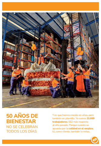 50 A%u00d1OS DEBIENESTARNO SE CELEBRANTODOS LOS D%u00cdASY es que hemos crecido en a%u00f1os, pero tambi%u00e9n en plantilla. Ya somos 21.869 trabajadores, 653 m%u00e1s respecto al a%u00f1o pasado. Porque cuando se apuesta por la calidad en el empleo, t%u00fa, como cliente, tambi%u00e9n lo notas.