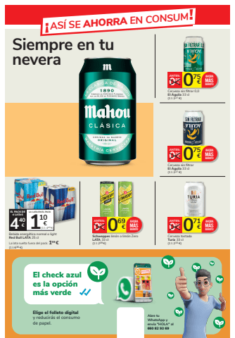 %u00a1AS%u00cd SE AHORRA EN CONSUM!Abre tu WhatsApp y env%u00eda \660 82 93 69El check azul es la opci%u00f3n m%u00e1s verdeElige el folleto digitaly reducir%u00e1s el consumo de papel.075 0 %u20ac 99%u20acANTES:Cerveza sin filtrar El %u00c1guila 33 cl (1 l: 227 %u20ac)AHORAM%u00c1SBARATO075 0 %u20ac 85%u20acANTES:Cerveza sin filtrar 0,0 El %u00c1guila 33 cl (1 l: 227 %u20ac)AHORAM%u00c1SBARATO071 0 %u20ac 84%u20acANTES:Cerveza tostada Turia 33 cl(1 l: 215 %u20ac)AHORAM%u00c1S 0 BARATO69 0 %u20ac 97%u20acANTES:Schweppes lim%u00f3n o lim%u00f3n Zero LATA 33 cl(1 l: 209 %u20ac)AHORAM%u00c1SBARATOBebida energ%u00e9tica normal o lightRed Bull LATA 25 clLa lata suelta fuera del pack: 159 %u20ac(1 l: 636 %u20ac)EL PACK DE4 LATASLA LATA EN EL PACK1(1 l: 440 %u20ac)10 4 %u20ac 40%u20acSiempre en tu nevera