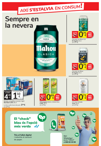 075 0 %u20ac 99%u20acANTES:Cerveza sin filtrar El %u00c1guila 33 cl (1 l: 227 %u20ac)AHORAM%u00c1SBARATO075 0 %u20ac 85%u20acANTES:Cerveza sin filtrar 0,0 El %u00c1guila 33 cl (1 l: 227 %u20ac)AHORAM%u00c1SBARATO071 0 %u20ac 84%u20acANTES:Cerveza tostada Turia 33 cl(1 l: 215 %u20ac)AHORAM%u00c1S 0 BARATO69 0 %u20ac 97%u20acANTES:Schweppes lim%u00f3n o lim%u00f3n Zero LATA 33 cl(1 l: 209 %u20ac)AHORAM%u00c1SBARATOBebida energ%u00e9tica normal o lightRed Bull LATA 25 clLa lata suelta fuera del pack: 159 %u20ac(1 l: 636 %u20ac)EL PACK DE4 LATASLA LATA EN EL PACK1(1 l: 440 %u20ac)10 4 %u20ac 40%u20acEl %u201ccheck%u201d blau %u00e9s l%u2019opci%u00f3 m%u00e9s verdaTria el fullet digitali reduir%u00e0s el consum de paper.Obri WhatsApp i envia \al 660 82 93 69Sempre en la neveraAIX%u00cd S%u2019ESTALVIA EN CONSUM!
