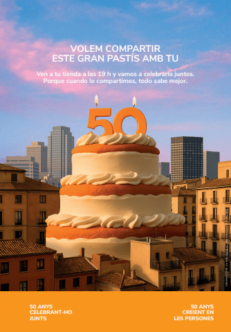 CONSUM S. COOP. V. %u2022 Avda. Alginet, n%u00b0 1 Silla (Valencia) %u2022 CIF: F-4607898650 ANYS CELEBRANT-HO JUNTSVOLEM COMPARTIRESTE GRAN PAST%u00cdS AMB TUVen a tu tienda a las 19 h y vamos a celebrarlo juntos.Porque cuando lo compartimos, todo sabe mejor.50 ANYS CREIENT EN LES PERSONES