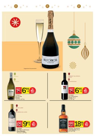 699 7 %u20ac 90%u20acABANS:Vi blanc DO Rueda Protos75 cl (1 l: 932 %u20ac)ARAM%u00c9SBARAT 685 7 %u20ac 59%u20acABANS:Vi negreDO SomontanoEnate 75 cl(1 l: 913 %u20ac)ARAM%u00c9SBARATULL DE LLEBREDO RIBERA DEL DUEROCABERNET SAUVIGNON /MERLOTDO SOMONTANOVERDEJODO RUEDA965 10 %u20ac 50%u20acABANS:Vi negreDO Ribera del Duero Finca Resalso75 cl (1 l: 1286 %u20ac)ARAM%u00c9SBARAT 1899 23 %u20ac 25%u20acABANS:Whisky Tennessee Jack Daniel%u2019s 70 cl(1 l: 2713 %u20ac)ARAM%u00c9SBARATSuggeriment de presentaci%u00f3
