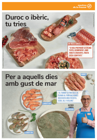 Disponible en botigues amb el producte.Duroc o ib%u00e8ric, tu tries%u201cEL TURBOT %u00c9S TAN F%u00c0CIL DE CUINAR AL FORN QUE NOM%u00c9S NECESSITA UNES PATATES, CEBA, ALL I VI BLANC%u201d.Suggeriment de presentaci%u00f3.Disponible en botigues amb el producte.Suggeriment de presentaci%u00f3.Per a aquells dies amb gust de mar%u201cSI VOLS PREPARAR-LO EN UNA FUSTA, ACOMPANYA%u2019L AMB PANETS CRUIXENTS, FRUITA SECA I CONFITATS%u201d.UN FRESC CONSELL:uN FRESC CONSELL D%u2019EN RICARDOLLAGOST%u00cd CUITLLAGOST%u00cd CruGambOT