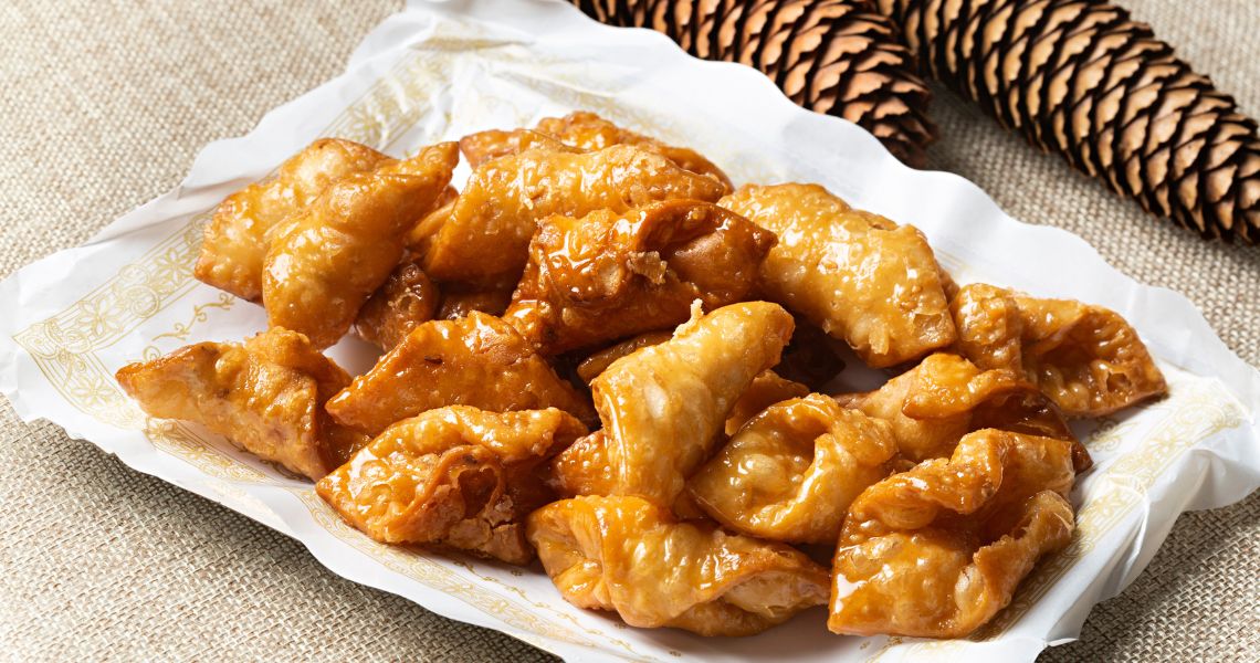 These are sweet pastries, which are round or oblong, sometimes filled with cream, angel hair (a type of sweet pumpkin preserve), candied fruit, or chocolate, and decorated with sugar or fruit. They symbolize indulgence before Lent and are usually shared among family and friends during the Carnival.