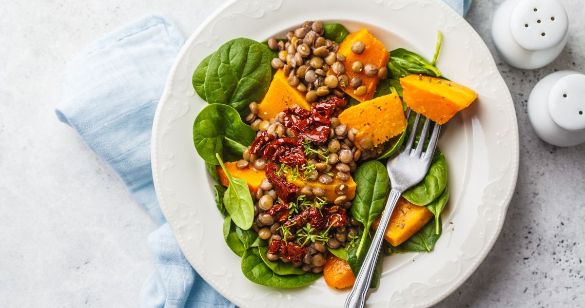 - Lentil salad with vegetables and extra virgin olive oil.