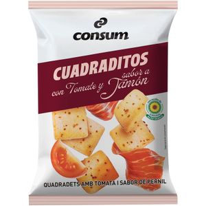 Dicen que el cuadrado es la forma perfecta… y para confirmarlo llegan los nuevos cuadraditos Consum. Con sabor jamón y sabor tomate y orégano, son el snack de medidas perfectas para entrar de un bocado y dejarte con ganas de otro. Ideales para picar a media mañana, de merienda o para elevar al cuadrado cualquier tabla con quesos y fiambres.