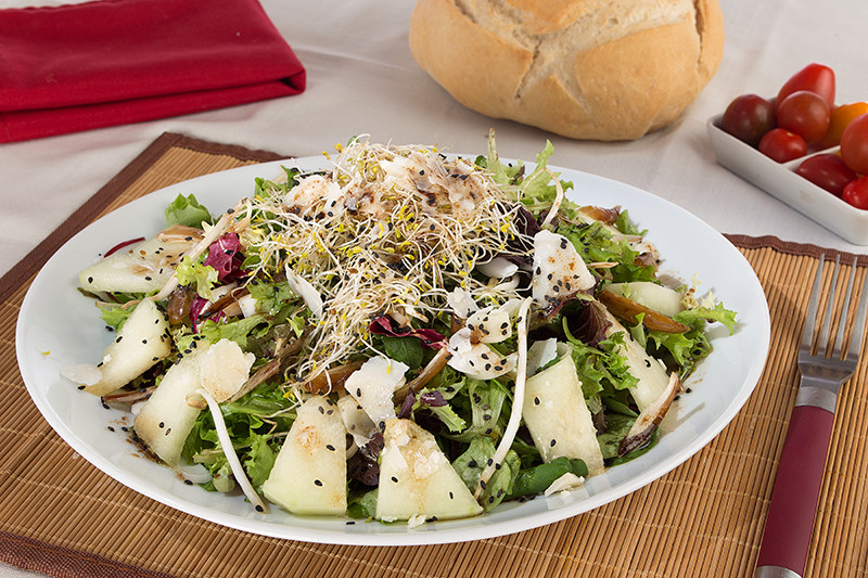 Mi primer menú Menú generado para 7 días y 4 comidas al día. Este es su menú con recetas para todos los días y alimentos seleccionados con sus propias restricciones. Compartir Compartir el contenido Mi primer menú Copiar Ver PDF Día 1 Día 2 Día 3 Día 4 Día 5 Día 6 Día 7 Desayuno Desayuno Pan integral de espelta con nueces Desayuno/Merienda Pan integral con margarina y mermelada Almuerzo Primero Ensalada con melón, germinados y parmesano Segundo Tortilla de calabacín Desayuno/Merienda Cuajada con miel Merienda Desayuno/Merienda Pan con aceite Desayuno/Merienda Batido de plátano y yogur desnatado Cena Primero Ensaladilla a mi manera Guarnición Guiso de champiñones y tomates con olivada Postre: Repostería Tarta de chocolate Desayuno Desayuno/Merienda Pan con queso fresco Desayuno/Merienda Batido de manzana y piña Almuerzo Primero Empanada de legumbres y verduras Segundo Pasta de colores con atún Postre: fruta Melocotones con yogur y vinagre de módena Merienda Desayuno/Merienda Biscotes con queso fresco Desayuno/Merienda Yogur desnatado con ciruelas pasas Cena Guarnición Semillas de calabaza tostadas Guarnición Láminas de calabacín con verduras (sin sal) Desayuno/Merienda Uvas Desayuno Desayuno/Merienda Macedonia de frutas Desayuno/Merienda Mandarina Almuerzo Primero Langostinos con copos de maíz Segundo Alubias con tomate Postre: Repostería Calabaza glaseada Merienda Postre: fruta Sandía Desayuno/Merienda Zumo de pomelo Cena Primero Sopa de verduras con rebanadas de rábanos Guarnición Cintas de calabacín rellenas de tomate, olivas y queso de cabra Postre: fruta Bebida de melón y albaricoque Desayuno Desayuno/Merienda Leche de soja con cereales sin lactosa Desayuno/Merienda Pan integral con requesón y mermelada Almuerzo Primero Crudités con salsa Segundo Arroz con verduras y nueces Postre: Lácteo Mousse rápida de naranja Merienda Desayuno/Merienda Pan de cereales con aceite y tomate Desayuno/Merienda Pan integral con queso fresco Cena Primero Sopa de marisco Guarnición Brócoli a la plancha con vinagreta de cacahuetes Postre: Repostería Tarta sin masa de cerezas Desayuno Desayuno/Merienda Tortitas de arroz con jamon de pavo Desayuno/Merienda Cake de limón y semillas de amapola Almuerzo Guarnición Judías verdes con salsa de almendras y berberechos Segundo Atún al horno Desayuno/Merienda Pera Merienda Desayuno/Merienda Galletas María Desayuno/Merienda Pan integral con miel Cena Guarnición Berenjenas rellenas de verduras Guarnición Berenjenas al horno Postre: fruta Peras en almíbar infusionadas con canela Desayuno Desayuno/Merienda Biscotes con aceite Desayuno Pan integral de espelta con nueces Almuerzo Primero Sopa fría de tomate y zanahoria Guarnición Pastel de verduras Desayuno/Merienda Macedonia de frutas Merienda Desayuno/Merienda Zumo de pomelo con miel Desayuno/Merienda Infusión de menta fresca y miel Cena Guarnición Puré de calabacín Guarnición Carpaccio de calabacines Postre: Repostería Melón al oporto Desayuno Desayuno/Merienda Kéfir con melocotón y cereales integrales Desayuno/Merienda Biscotes integrales con queso fresco Almuerzo Primero Crepes de puré de patata Segundo Emperador al vino blanco Desayuno/Merienda Macedonia de frutas Merienda Desayuno/Merienda Barrita de cereales ""ligera"" Desayuno/Merienda Tortitas de arroz con jamon de pavo Cena Primero Vieiras en salsa de habichuelas negras Guarnición Tempura de verduras con harina de arroz Desayuno/Merienda Plátano Buscador de recetas